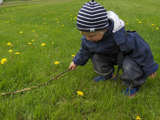 Vitsippor och blåsippor blommade och konvaljerna vid husväggen hade knoppar.